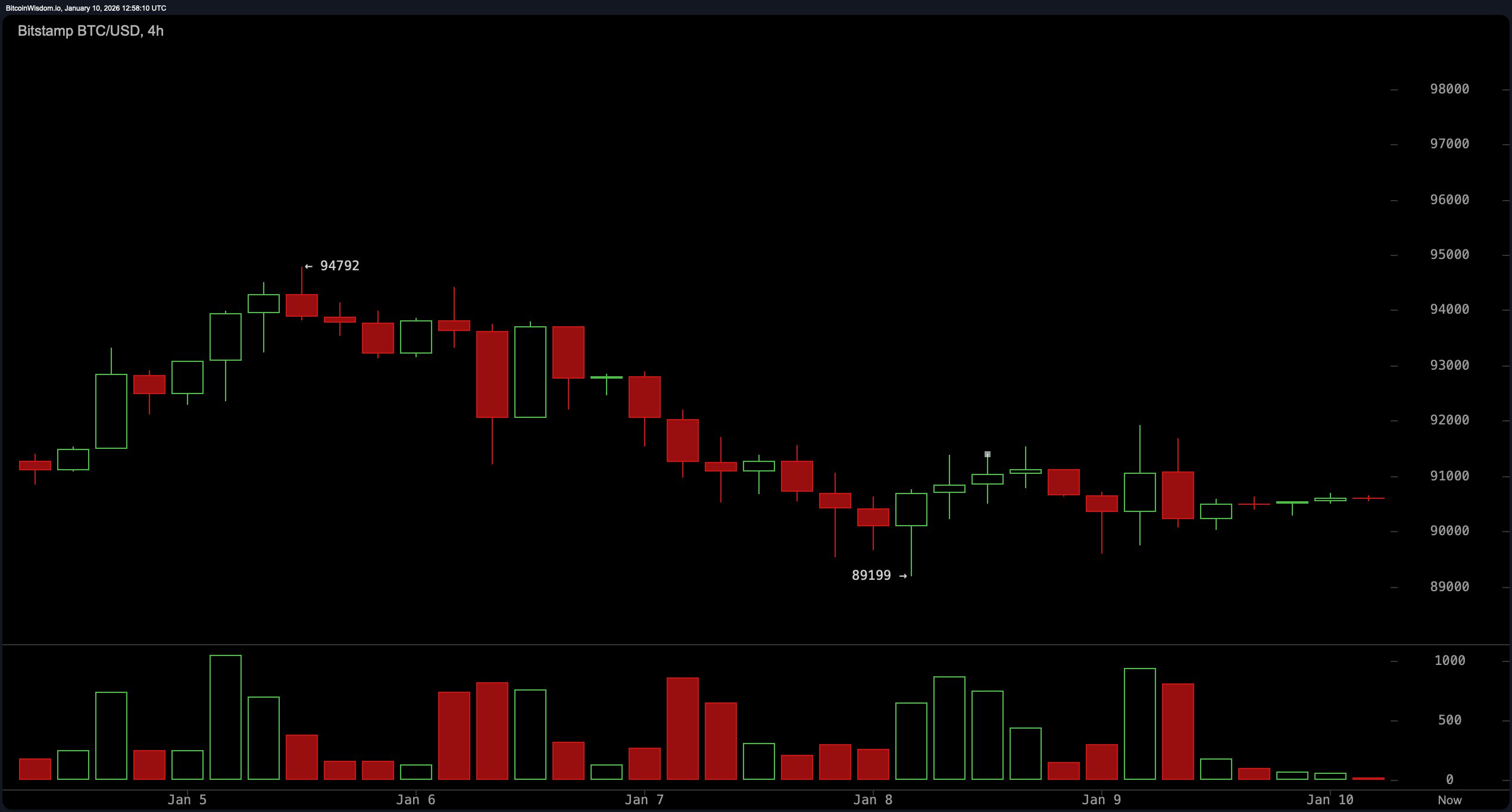 Увеличиваем масштаб до 4-часового графика, и оптимизм, когда-то такой же яркий, как весеннее утро в Москве, начинает осыпаться, как старые обои. Bitcoin дрейфует в боковике в диапазоне от $90,000 до $91,000, его ценовая структура намекает на медвежий флаг – консолидацию, а не празднование. Объем на зеленых свечах, такой же разочаровывающий, как теплый борщ, сигнализирует о том, что покупательский энтузиазм либо потерян, либо ужасно переоценен. Решительный пробой вниз от $90,000 может открыть ворота для повторного тестирования зоны поддержки $88,500 — $89,000, особенно если объем решит присоединиться к медвежьему хору.