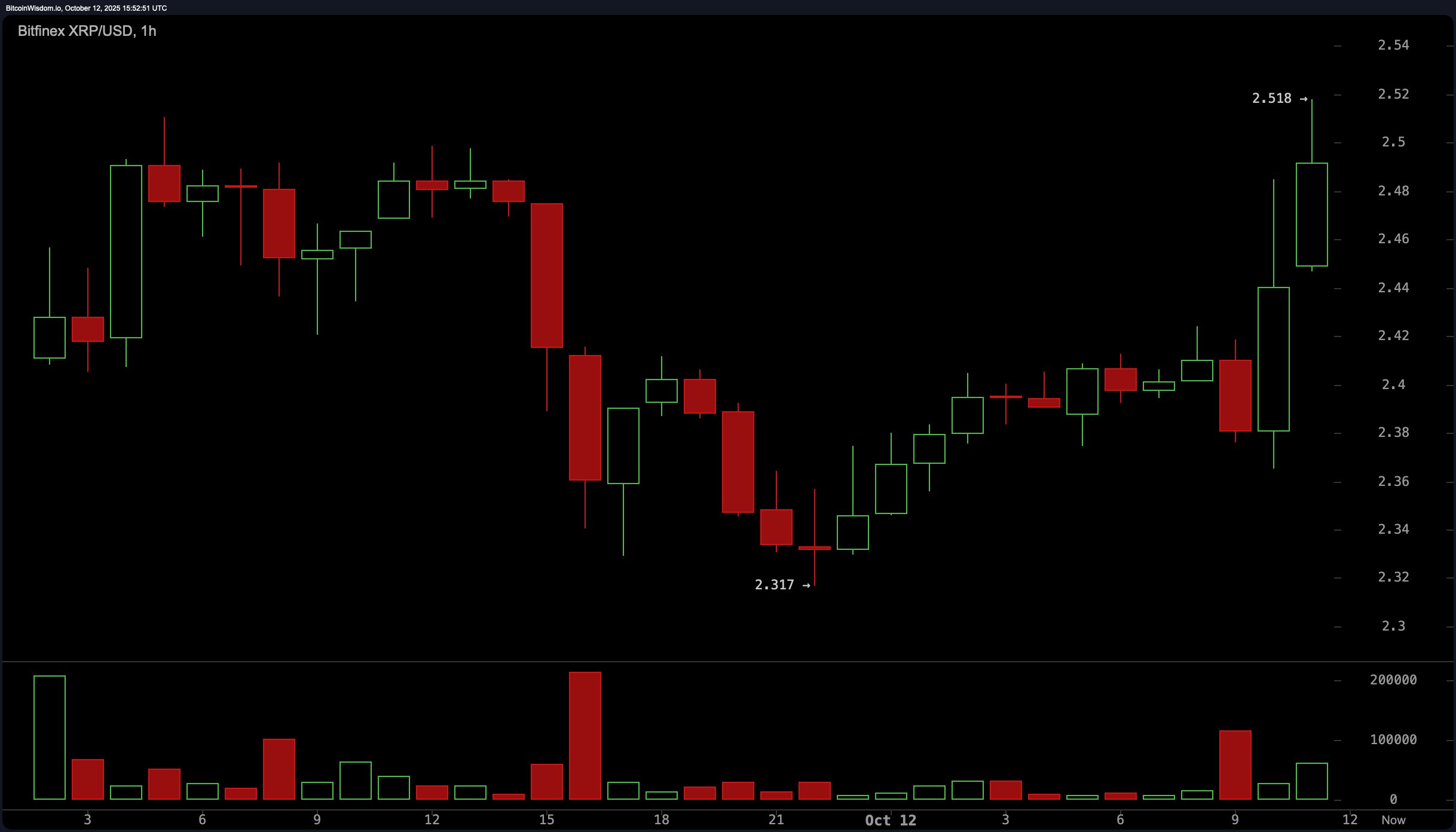 Ах, XRP, криптовалюта, которая танцует как медведь с двумя левыми ногами. 12 октября 2025 года в 11:50 утра она споткнулась до $2.49, ее рыночная капитализация составила всего $148.7 миллиардов, а 24-часовой объем торгов – скромные $8.49 миллиардов. Она колебалась между $2.32 и $2.52 в течение дня, в то время как ее недельный диапазон простирался от $2.32 до $3.05 – унылое представление, если когда-либо и было такое.
